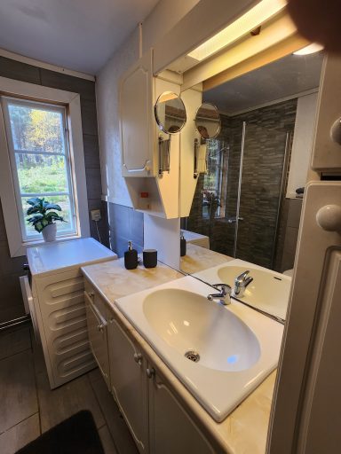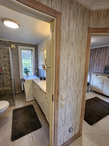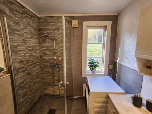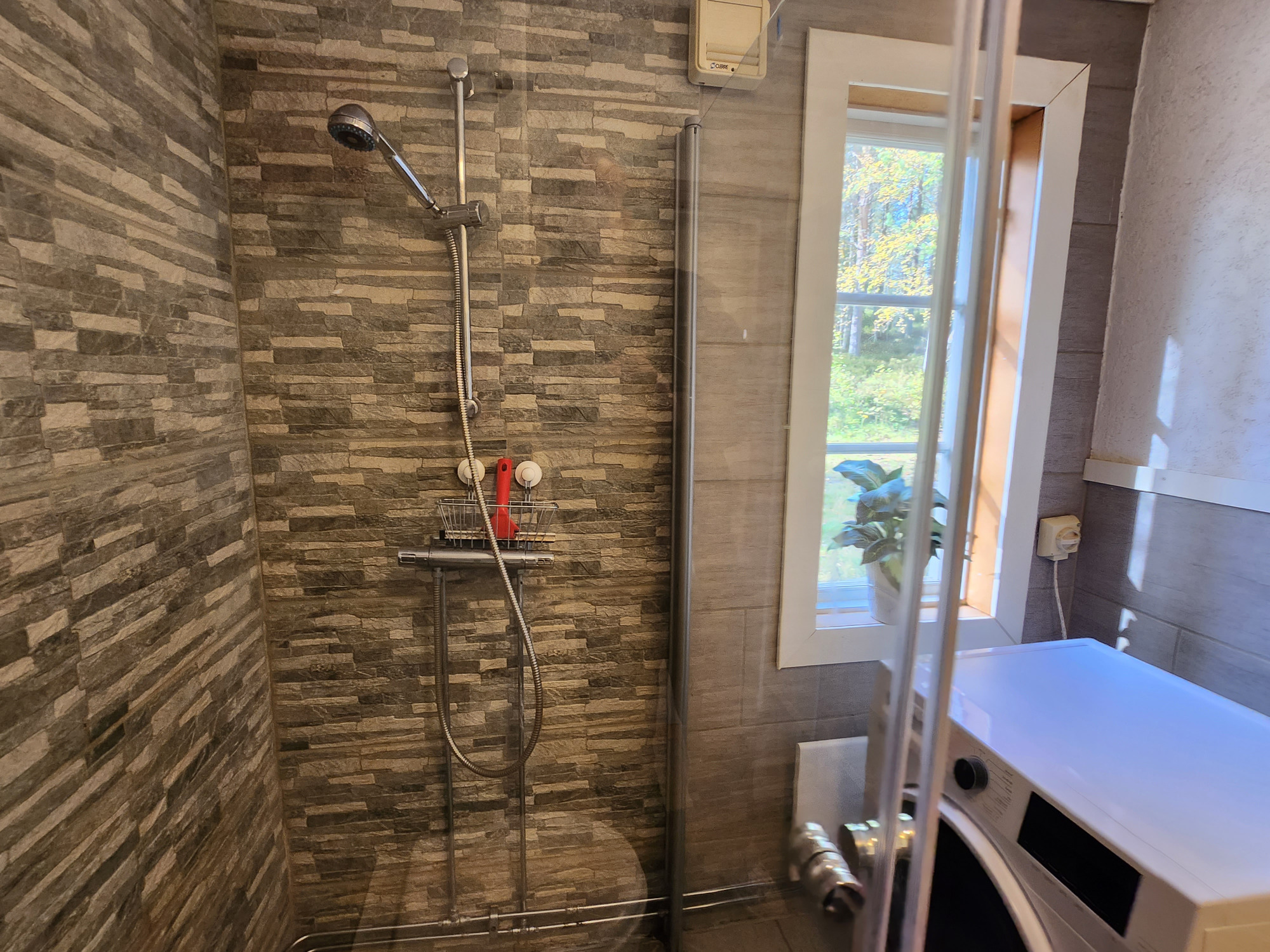 Ein modern renoviertes Badezimmer mit Dusche, WC, und Waschmaschine ist natürlich auch vorhanden.