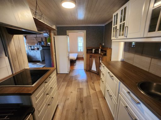 Sie finden dort ein grosses Wohnzimmer mit Esstisch, deutschem TV, grossem offenen Kamin, 3 Schlafzimmer ( ein grosses "Elternschlafzimmer" mit 2 Einzelbetten, 1 Schlafzimmer mit einem 1,2m Bett sowie ein kleines Schlafzimmer mit 2 Einzelbetten).Die Küche ist voll ausgestattet mit E-Herd, Mikrowelle, Kaffeemaschine, Wasserkocher,Toaster, Kühlschrank mit Gefrierfächern und Spülmaschine.